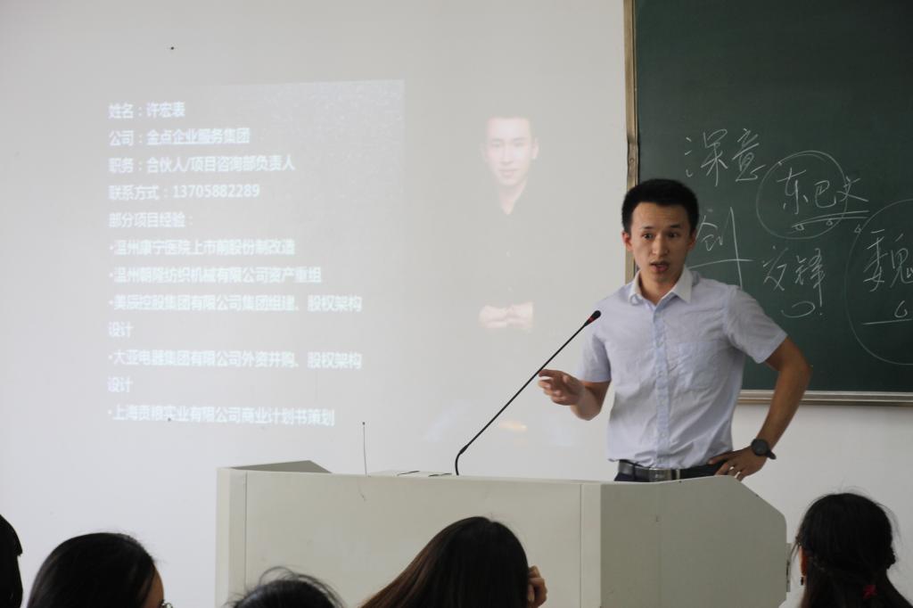 上午,温州网特职业技术培训学校校长苏芳芳、温州著名财务讲师肖财明分别以“移动电商微信营销”、“老板的财务常识”为主题为大家带了两场深入浅出、幽默风趣、贴近实战的讲座。下午,金点企业服务集团两名著名讲师林纯纯、许宏表就“商标创建与品牌提升”、“创业初期的股权架构设计”两个创业过程中涉及到的重要问题为大家作了深入解析。讲座受到了老师同学及企业的热烈欢迎。