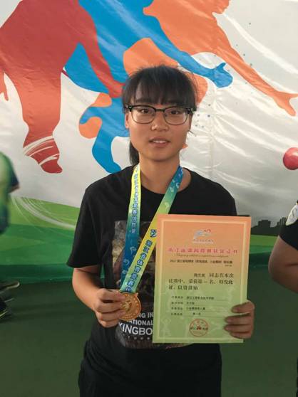 经贸学院1701电子商务专业班级小将周兰灵获得小金属球女单打冠军