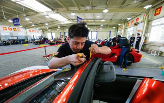 年轻人喜欢追求时尚和个性,千篇一律的汽车颜色已经不能满足他们的需求,于是汽车改色便变得越来越被大家所关注。9月16-17日,由浙江工贸职业技术学院汽机分院承办的温州市首届“秃鹰杯”汽车改色膜比赛在浙江工贸职业技术学院举行,来自全市的7家顶尖汽车美容养护公司技术骨干同场竞技,掀起一场全民改色风潮。汽车专业群主任翁茂荣副教授作为比赛的评委,参加了此次比赛的评比。
