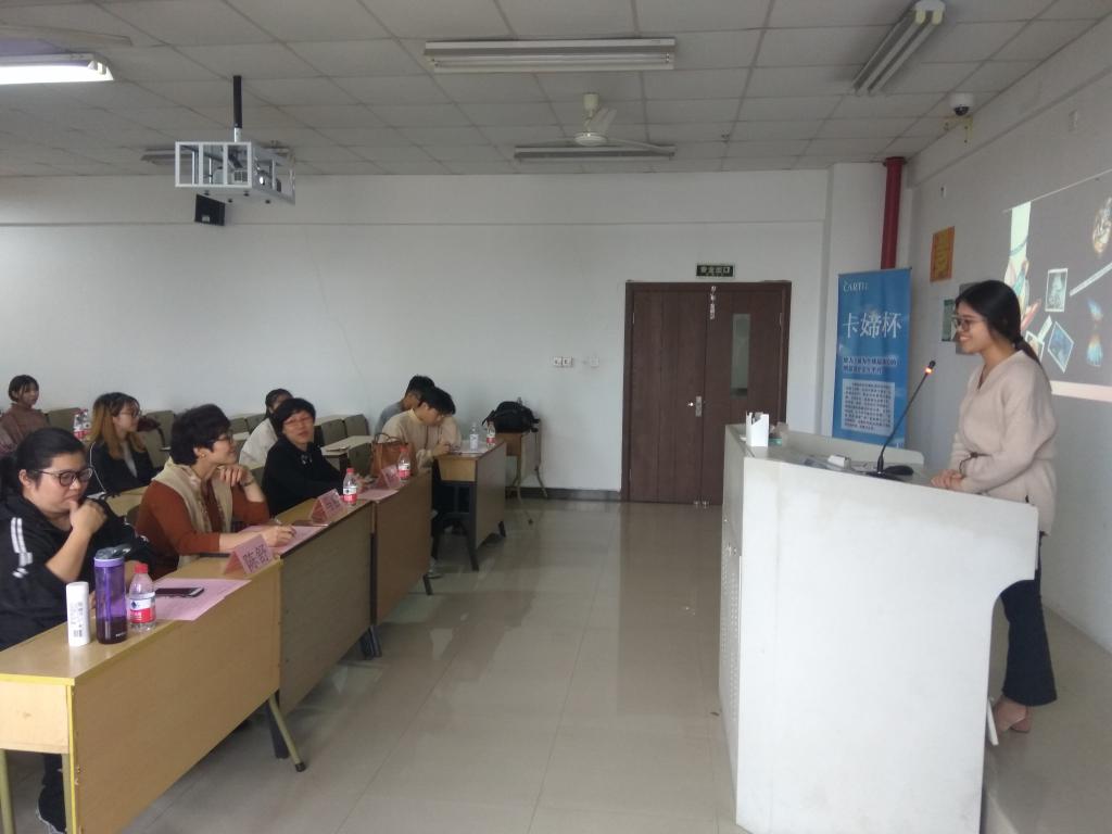 11月10日13:30,设计分院首届“卡媂杯”女鞋设计大赛启动仪式在6号教学楼602教室举行。浙江省创意设计协会理事长、杭州玖捌虹图科技有限公司董事长马丽女士、自由设计师陈舒、工业设计专业教师郑莉珍老师担任本次大赛评委。鞋类专业老师刘剑担任主持。