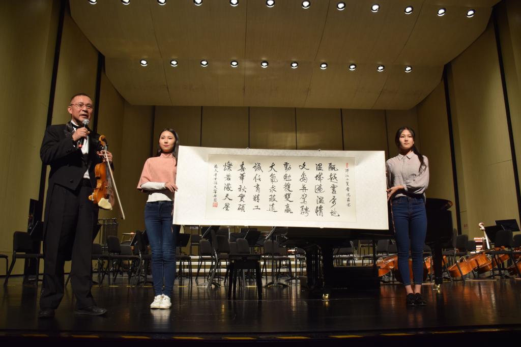 当晚,一曲华丽紧凑,语调欢快的《卡门》拉开了音乐会的序幕。小提琴独奏《沉思》,乐曲旋律优美,意境深邃纯净;管弦乐《明月三章》将三首不同时代、不同风格的描写月亮的歌曲编成交响乐,表达人们对幸福生活的追求和美的感受;被誉为“奥地利第二国歌”的《蓝色多瑙河》不仅深受世界人民所喜爱,更让我们沉醉其中;乐团团长叶小文用大提琴演奏了由蒙古族民歌改编的《鸿雁》,随着温婉低沉的大提琴声,一种向英雄致意的颂赞油然而生;由梁浩,陈燕民,马晓娟等演奏何梦扬钢琴伴奏的陕北民歌《山丹丹花开红艳艳》描述红军长征胜利抵达陕北时,正逢满山的山丹丹花开的美丽景象,全曲曲调明亮,旋律优美,每个音符都体现出了陕西淳朴的民情;钢琴协奏曲《鉴真东渡随想曲》由李岚清、唐建平根据郭沫若的诗作谱写成曲,旋律优美,激情澎湃,将鉴真东渡的艰辛通过音乐展现在观众面前,使人沉浸在历史的回音之中。大气磅礴,更有震撼心灵的红色旋律《红旗颂》,表达了人民群众对创建共和国的英雄们的缅怀与崇敬。在音乐会中满天星乐团成员与我院广大师生分享音乐故事,讲述他们如何学习音乐,用音乐激发热情、修炼心灵的人生经历,现场反响热烈。
