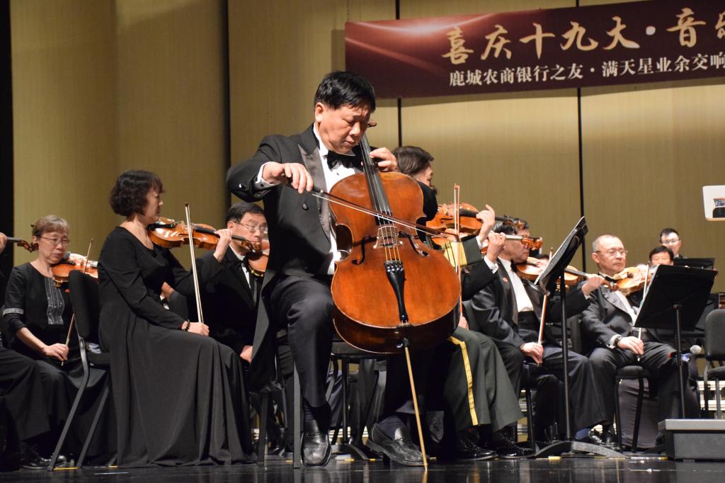 满天星业余交响乐团团长、全国政协文史与学习委员会副主任叶小文为师生们演奏大提琴独奏曲