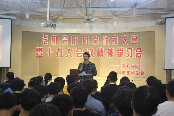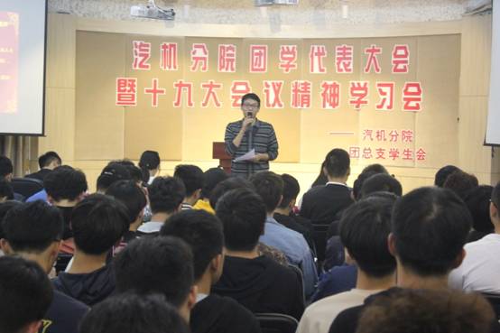 党的十九大是中国发展历史节点上一次重要的、盛大的、指向性极强的会议,会议围绕共产党的发展及当前社会的发展情况,接地气、务实效地分析了当前的形式,规划了未来的发展道路。因此,十九大的内容其实跟每个公民都是息息相关的。为积极响应党的十九大会议内容精神,提高学生的政治素养和道德素养,近期汽机分院在一号教学楼多功能厅,召开了团学代表大会暨十九大会议精神学习会。出席本次大会的有汽机分院吴学亮书记、团总支书记陈旖旎老师、辅导员黄丹华老师,学生会全体成员以及大一大二各班团学干部。