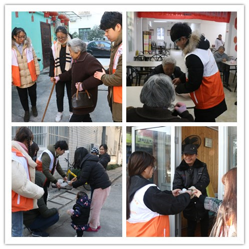 当日早上七点同学们集中八号楼门口一起乘搭公交出发,冬至活动如期展开。到达菱藕社区后志愿者们被分成四组,一个小组煮汤圆,一个小组给老年人公益测血压,还有一个小组负责端汤圆,当然也少不了走街串巷送汤圆的队伍。虽然天气寒冷,但是,当一碗碗热气腾腾的汤圆送到大家手中的时候,每个人的心里都是热乎乎的。