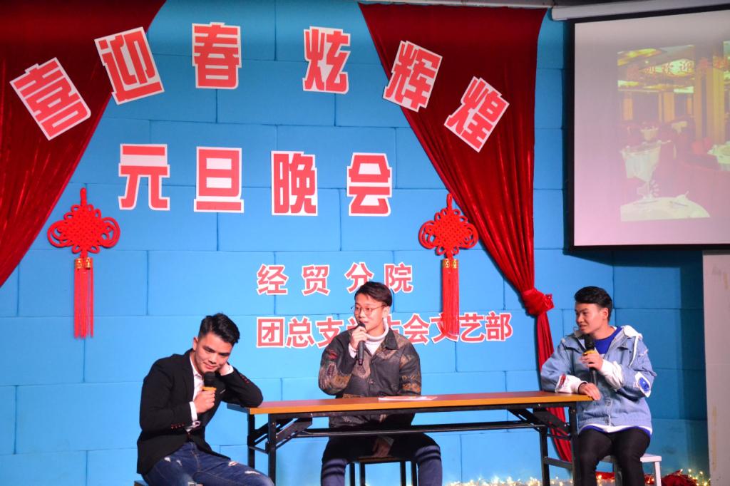 2017年12月28日晚6点整,经贸分院宣传贯彻党的十九大精神暨欢度元旦文艺晚会在阶梯教室隆重举行。经贸分院师生齐聚一堂,大家在浓浓的节日气氛和热烈的欢声笑语中共同迎接2018年的到来。