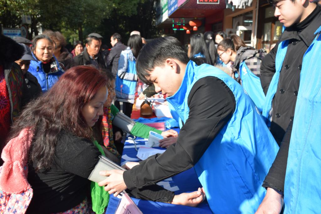 第三,血压测量。志愿者们微笑相迎每一位来检查的老人,且认真负责对待他们的检查。老人按要求卷袖落座后,志愿者将会把测血压的仪器为他们戴上。检查完毕后会告知他们最高和最低的数值,以及根据标准数值告知是否有血压偏高或偏低的现象,让他们了解现状。
