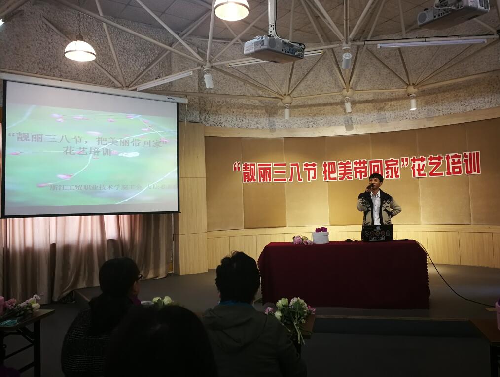 为庆祝第108个国际妇女节,构建和谐校园,陶冶教师情操,为我院女教工送上一份精美的节日礼物,学院工会于3月10日在多功能厅举办了两场“靚丽三八节,把美带回家”花艺培训活动,全院共有近100名女教工参加了活动。