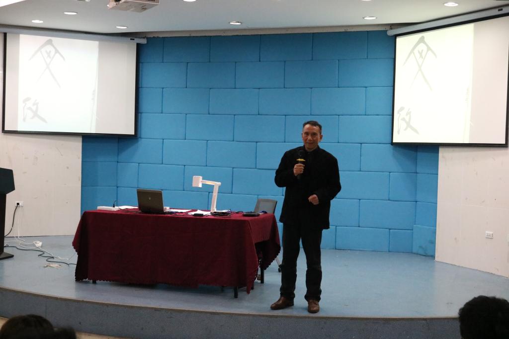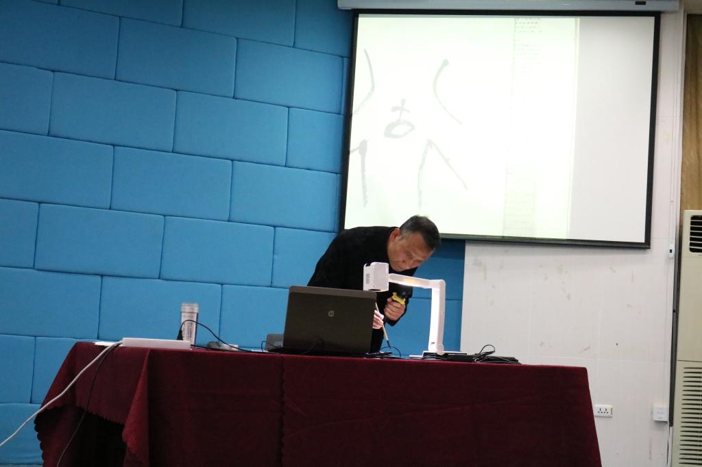 我院人文系人文艺术教研室主任、书法篆刻研究所所长何铁山教授为本期主讲人,作“新时代文化自信之根”主题演讲。何教授从习近平总书记十九大中关于文化自信的论述入手,结合自身对汉字学的深入研究,为我们解答关于文化自信之根来源于汉子构型,并做了具体说明。一是汉字是一个独立的哲学系统、思想系统或道德哲学系统。这主要与其构形材料源于:伏羲八卦、神农结绳、仓颉象形会意有关。二是汉字是形而上与形而下的最完美结合:这主要与汉字的象形性、多义性、哲理性、抽象性、艺术性相关。三是中国优秀传统文化所蕴涵的思想观念、人文精神、道德规范都可在汉字的最初构形中找到源头或根据。何教授现场书写“纹”“德”等古体字,通过对这些汉字构型的详细解析,举例阐释文化自信与汉字构型的密切关系。