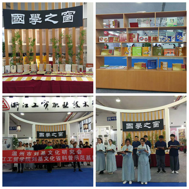 2018年3月22日至26日以“创意点亮生活”为主题的2018温州国际时尚文化创意产业博览会在温州国际会展中心开幕。温州市刘基文化研究会、浙江工贸学院刘基文化省科普示范基地整合学院刘基文化研读会、学院大益茶室、温州外来书画家联盟、育心经典读书会、和中国文人花道等多个团队,围绕中国传统文化“儒道”,以“国学之窗:刘伯温文化”为展示主题,向广大市民展示了传统的书法、绘画、茶艺和插花艺术以及刘基文化研究文献、著作,将刘伯温文化打造成弘扬传统文化的窗口。