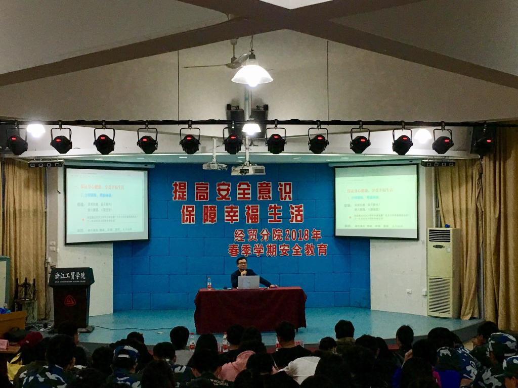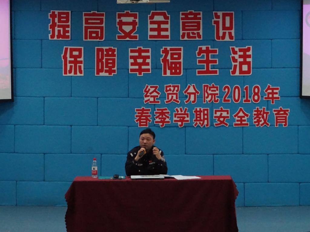 近年来,“校园贷”、“电信诈骗”以及大学生在校安全事故的频繁发生,在校大学生成为了无数犯罪分子的猎物,使得安全问题再一次成为了我院师生尤为关注的一环。为拉响警钟、竖立起同学们心底最后的防线,为创建“和谐校园、平安校园”,提高学生安全意识,保障幸福生活,经贸分院联合保卫处于3月27日在阶梯教室成功举办2018年春季安全知识教育讲座。