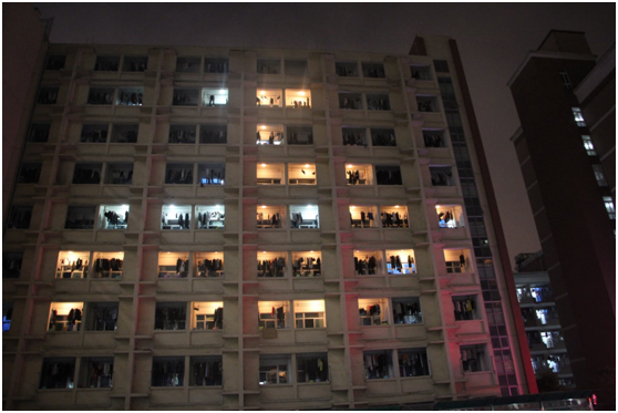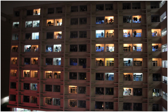2018年3月31日晚上8点30分,活动正式开始。在学院领导的大力支持下,全体工贸学子及院宿管会工作人员的配合下,各幢公寓全部熄灯,并同时在相应阳台点亮阳台灯,发出我们工贸学子对节能环保的美好愿望。