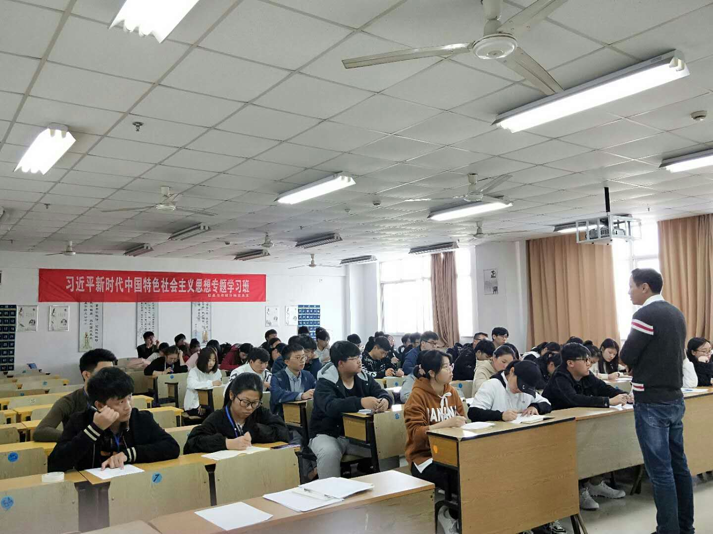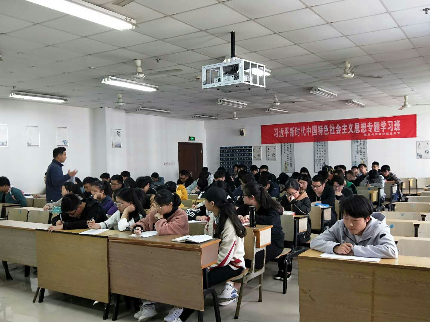 2018年3月26日至4月2日,信息与传媒分院党总支在入党积极分子中开展了“习近平新时代中国特色主义思想专题”学习班。本次学习班邀请了信息与传媒分院党总支书记任志杰与四位支部教师党员林朝荣、吕志力、章增优和张淑琴老师分别给17届全体入党积极分子讲课。专题学习班的主要内容有《要有高度的文化自信》、《学习新时代经济思想》、《核心竞争力》、《科教兴国》等。