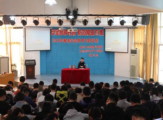 为增强学生的安全意识,提高自我防范意识,营造和谐稳定的校园环境,2018年4月8日下午,温州市鹿城区蒲鞋市派出所陈恩义警官在浙江工贸职业技术学院电子工程系和保卫处联合诚挚邀请下,于阶梯教室为我系2017级400多名学生举办了校园安全教育专题讲座。