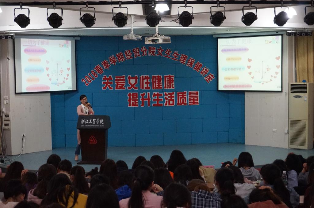 针对这种情况,为了让大家正确了解自己的生理特点,关注自身生理健康,增强女大学生的自我呵护、自我关爱意识,4月11日晚,我院在阶梯教室成功举办了2018年春季学期经贸分院女生生理保健专题讲座。