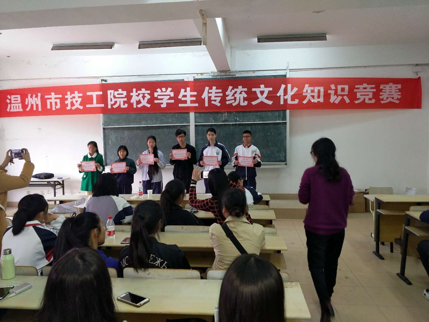 本次由浙江省职业技能教学研究所组织的学生传统文化知识竞赛旨在增强学生人文修养,弘扬国学。进一步培养了学生综合素养,开阔学生传统文化知识视野。知识竞赛内容涉及古诗词、成语、中国古代文学常识、中华民俗礼仪文化等方面内容。通过本次竞赛,我院学子以不俗的实力为工贸技师学院赢得了荣誉。且孙幸子同学获得了参加省赛的入场券。