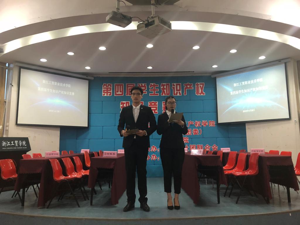 为迎接第18个世界知识产权日,4月26日晚上6:30,第四届学生知识产权知识竞赛在浙江工贸职业技术学院阶梯教室隆重拉开帷幕。本次大赛于一个月前正式启动,经过层层选拔,最后共有14支代表队伍进入决赛,他们分别来自院系和校学生会等组织。
