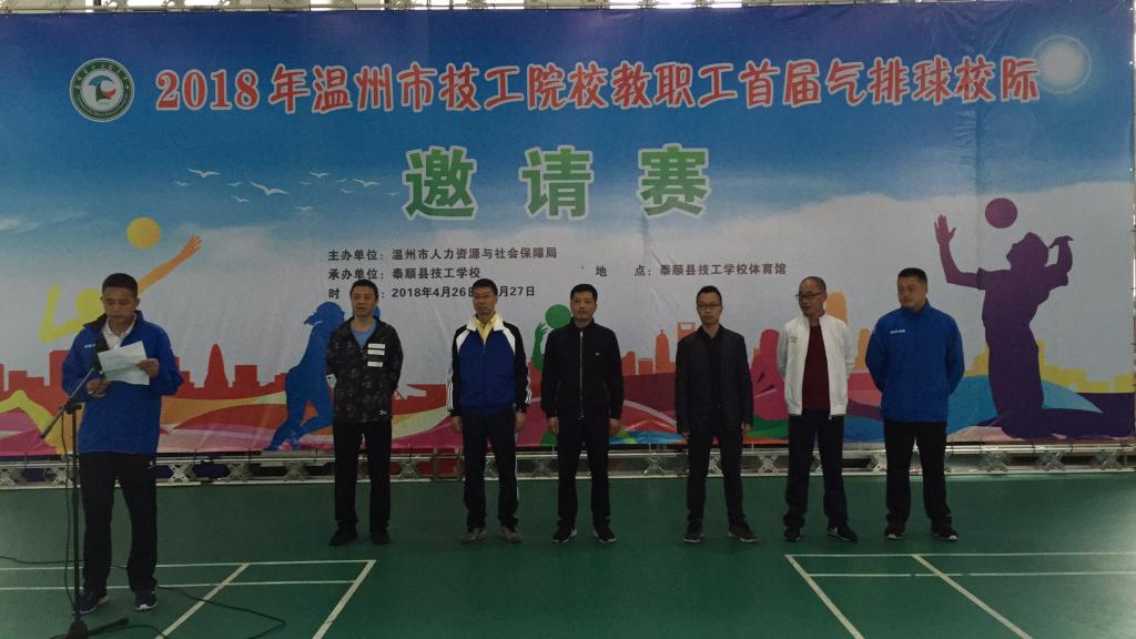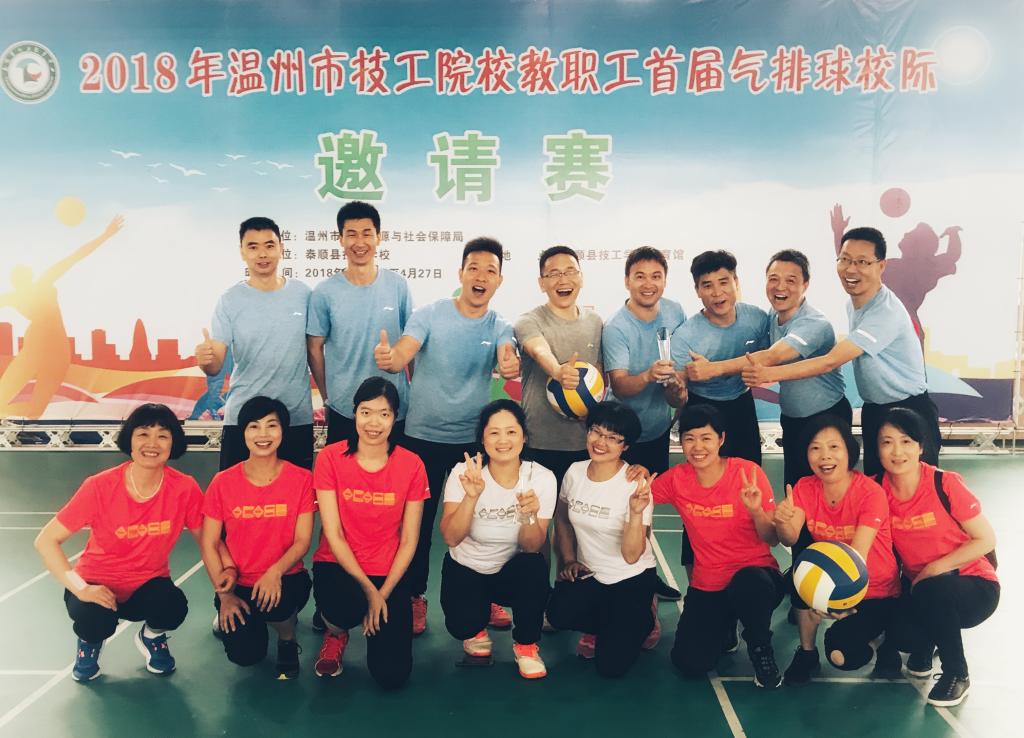 4月27日,由温州市人力资源和社会保障局举办,泰顺县职业教育中心承办的2018年温州市技工院校教师气排球赛在泰顺职教中心隆重开幕。我院分别选派了男女代表队参赛,经过激励的拼搏和角逐,男队一枝独秀,摘获冠军;女队获得亚军。