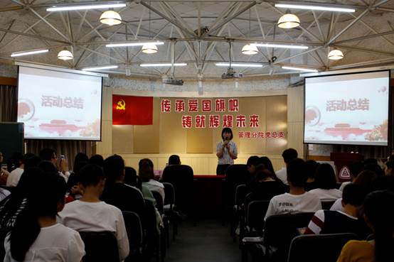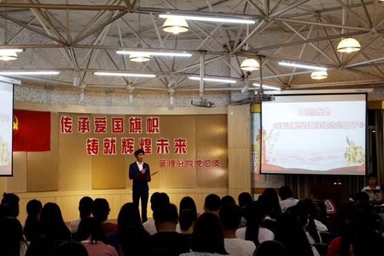 2018年5月7日,管理分院学生党支部在学院多功能厅开展了以“传承爱国旗帜,铸就辉煌未来”为主题的“中国梦”教育活动。管理分院学生党员、发展对象、入党积极分子等近200人参加。管理分院党总支青年委员郑秀老师、管理分院第一学生党支部书记陈君老师等也出席活动。