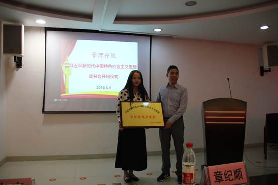 随后,章纪顺老师为管理分院“习近平新时代中国特色社会主义思想读书会”授牌,郭薇老师为“习读会”成员授《习近平的七年知青岁月》书籍。