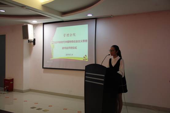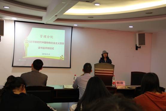 2018年5月4日,管理分院“习近平新时代中国特色社会主义思想读书会”开班仪式在学院三号楼三楼温州风投院会议室举行。管理分院30多位读书会成员参加。人文系党总支书记、马克思主义学院副院长章纪顺老师,管理分院党总支书记项光春老师以及人文系副教授、管理分院“习读会”指导老师郭薇老师等出席仪式。