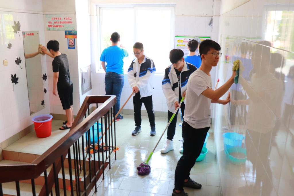 2018年5月10日星期四中午12:10-13:10,为丰富学院内涵建设,配合学院红五月学生活动,纪念五四运动99周年纪念活动,弘扬五四精神,学生公寓开展党建工作进公寓系列活动。学生公寓C幢由高职管理学院、技师、成教学院的预备党员、建党对象,院宿管会楼层长和纪检部、班干部等30多名同学组成的青年志愿者在公寓辅导员徐剑敏、薛明银,管理员余非、程玮华老师带领下,开展“明德修身,我爱我家,美化公寓环境”活动。大家一起在C幢学生公寓擦洗玻璃、瓷砖,清理蜘蛛网,清扫通道和楼梯以及南面河边草坪、清洗寝室卫生间、浴室等,为同学们带来舒适的居住环境,创造优美的校园环境。