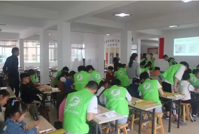 在抵达上寺西村文化大礼堂后,志愿者们有序地准备活动用品,等待着小朋友们的到来。活动初始,先由主持人向小朋友们讲述了此次活动的目的和内容,主要是为他们讲述热缩片的制作过程与方法。接着,根据先前的分配内容,各个志愿者带着小朋友们在热缩片上画上他们喜欢的动画人物或者其它事物。虽然只是简单的绘画操作,志愿者和小朋友们都全情地投入。在完成绘画操作后,志愿者们带领小朋友们对热缩片进行裁剪、打孔和热缩过程。并且,志愿者也积极引导各个小朋友观察并学习热缩片成型的原理。最后,活动也接近了尾声,每个小朋友都拿到了自己亲手做的热缩片挂件。看着小朋友们脸上的笑容,听着小朋友们的亲切称呼,志愿者们的内心也乐开了花。