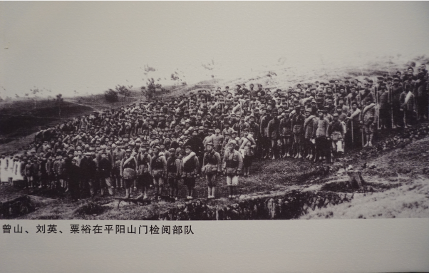 图4:曾山、刘英、粟裕在平阳山门检阅部队的珍贵照片