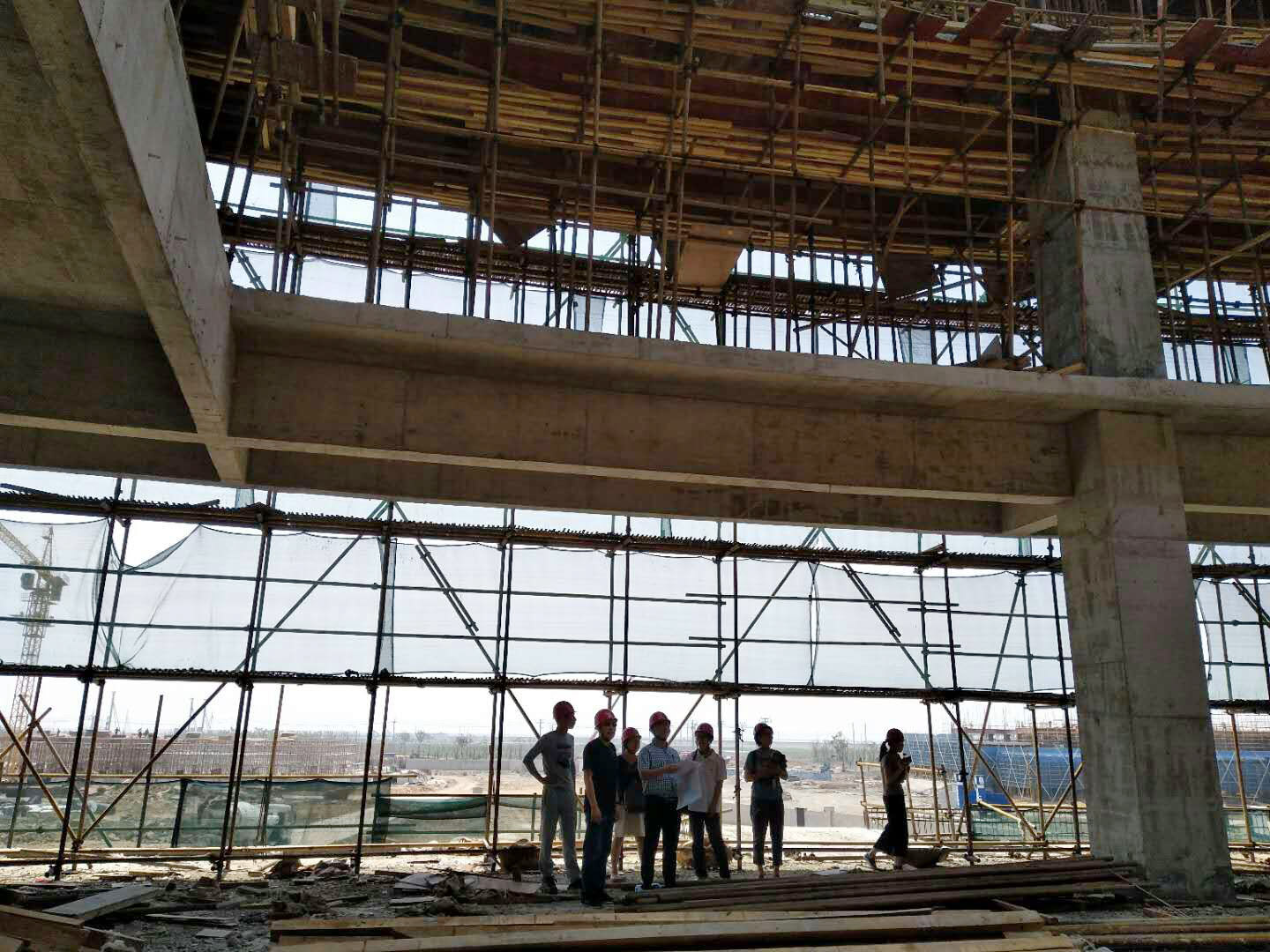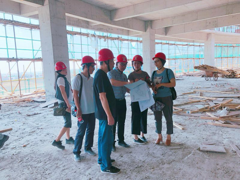 目前,学院瓯江口新校区建设正如火如荼,她的建设进程牵动着每一位工贸人的心。作为新校区标志性建筑——图书资讯大楼更牵动着每一位工贸师生的心。为全面了解图书资讯大楼建设情况,收集新图书馆建设方案第一手资料,5月14日上午图书信息中心副主任罗坚、督导员钱守义带领图书信息中心部分馆员老师前往瓯江口新校区,实地调研新校区图书资讯大楼建设情况。尽管施工现场尘土飞扬,行路困难,大家还是兴致高涨,对新校区的整体规划和建设进展赞叹不已。新校区图书资讯大楼已经初显雏形,大家实地查看了大楼大厅、采编室、书库、阅览区、自习区等区域,热烈讨论了学院新图书馆建设方案,并对各馆室的功能、风格和细节处理提出了良好建议。调研期间,受到了新校区建设项目组章迪康主任的热情接待,项目组孙建仁老师详细、热情为大家介绍图书资讯大楼建设的情况。