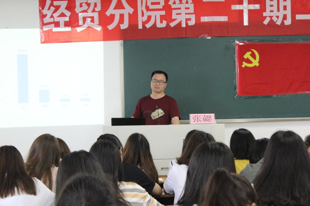 5月12日,经贸分院党总支在六号楼6204教室举行第二十期二级业余党校培训,参加培训的人员是2017级第二批入党积极分子。
