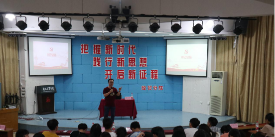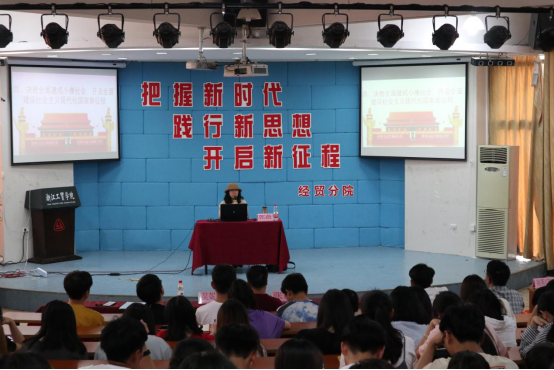 为深入学习贯彻习近平新时代中国特色社会主义思想,经贸分院于5月24日在阶梯教室成功举办了“把握新时代 践行新思想 开启新征程 ”专题讲座,特邀请人文系郭薇老师为本次活动主讲人。经贸分院党总支书记张勰、辅导员吴妮妮及分院300余学生聆听了本次讲座。
