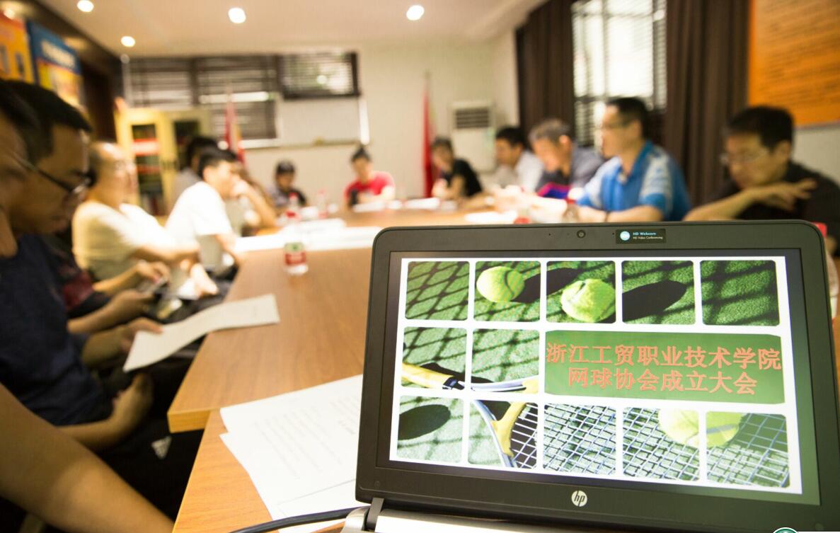 2018年5月25日下午4点半,浙江工贸职业技术学院网球协会在e立方体育馆召开成立大会,在学院工会、温州网球协会的指导和监督下,会议宣读并通过了《浙江工贸职业技术学院网球协会章程》、审议并通过网球协会组织机构、会费收费标准等,全体会员不记名投票方式选举出了浙江工贸职业技术学院网球协会会长、副会长、秘书长等。