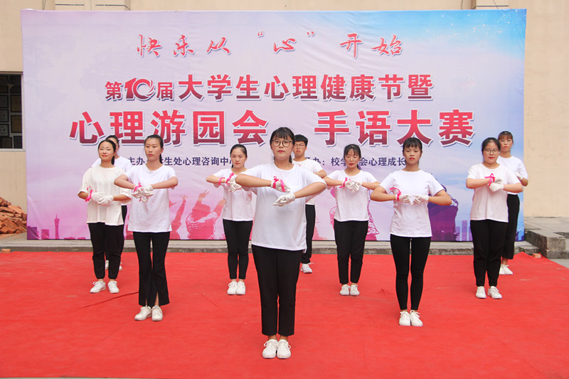 为了宣传心理健康知识,树立正确的心理健康观念,拉近心理健康教育与同学们的距离,5月25日下午,由学生处心理咨询中心主办的第十届大学生心理健康节闭幕式暨手语大赛、心理游园会如期举行。