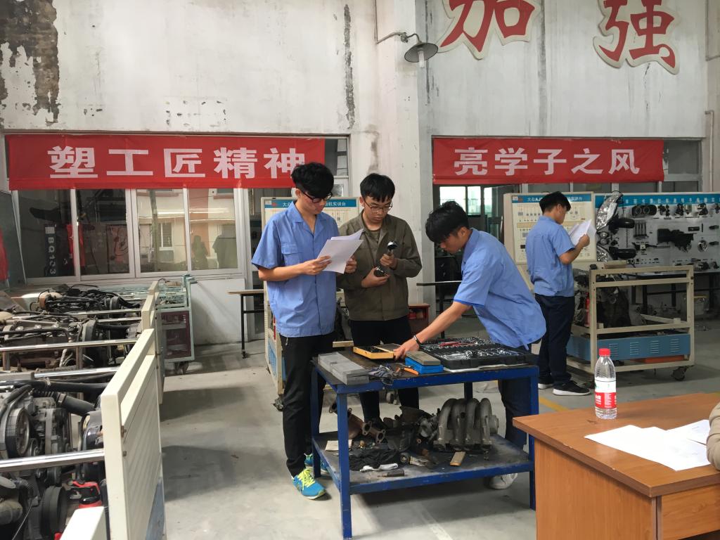 本次大赛分为两个环节,第一轮是实训室现场拆装发动机技能比拼,第二场是汽车维修知识竞赛。为了让同学们学到更扎实的专业知识,比赛期间还特意请专业老师对参赛选手进行为期两周的赛前培训。5月中旬在汽车实训场地展开了第一轮实操初赛,对6组参赛选手的专业技能进行考核,并由此筛选出了四强参加第二轮的知识竞赛。