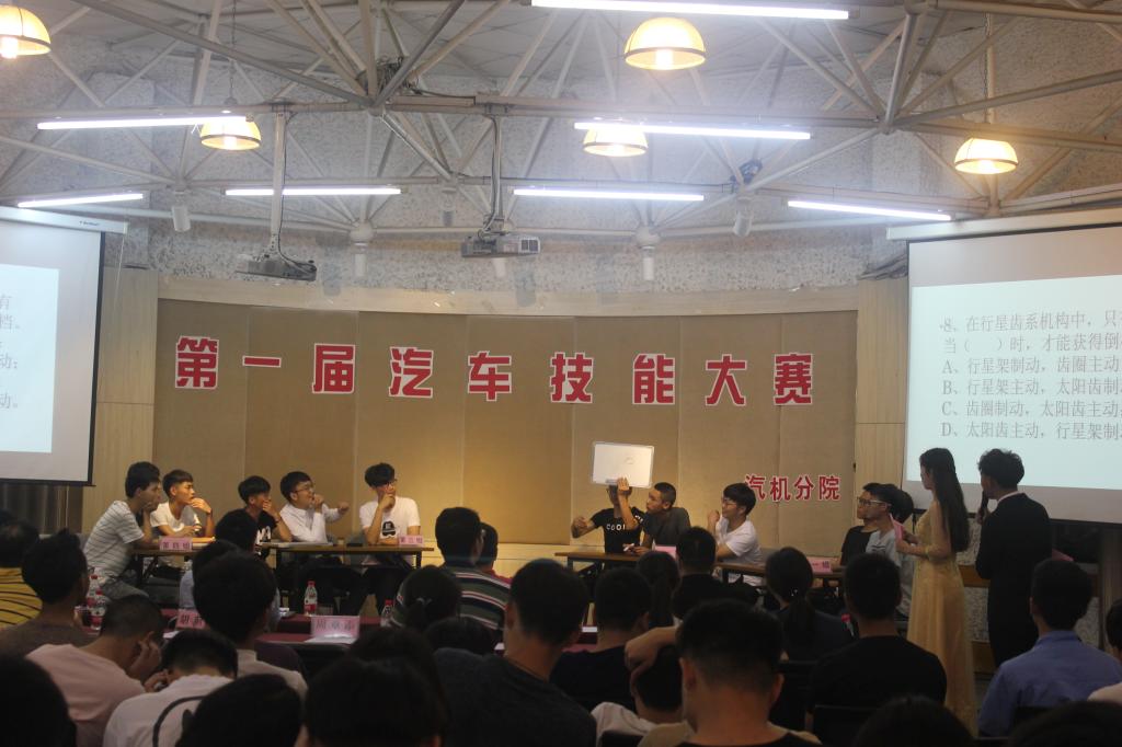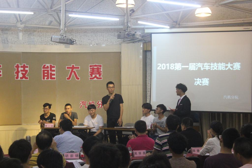 胜出的这四组经历了10天的备战,决赛于5月底在我校多功能厅举行。院学术委员会副主任、汽车专业群主任翁茂荣老师;汽修教研室主任尹学飞老师;专业老师徐文斐老师;专业老师陈维老师担任比赛专业评委;汽机分院党总支书记吴学亮老师;分院团总支书记陈旖旎老师;汽机分院辅导员周全老师;汽机分院辅导员黄丹华老师;教学秘书韩义秀老师作为嘉宾出席本次比赛。
