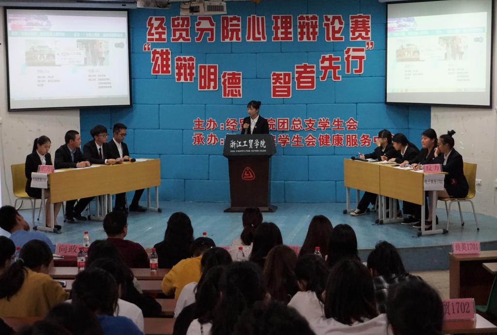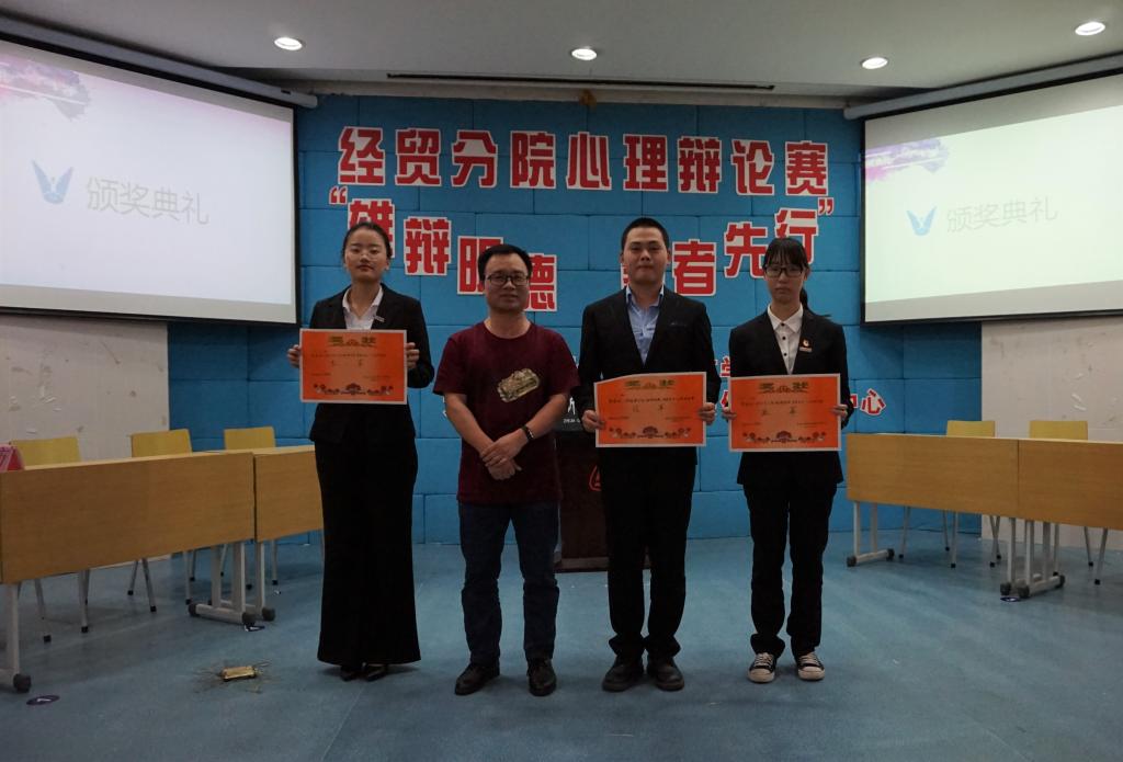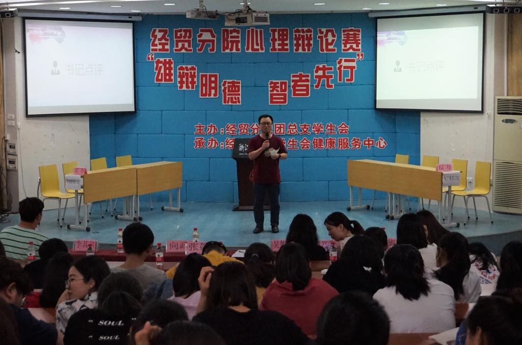 5月31日晚,经贸分院在阶梯教室举行心理辩论赛,经贸分院党总支书记张勰老师,经贸分院辅导员向政老师、郑雪琦老师,经贸分院团总支书记吴妮妮老师担任此次比赛评委,共有300余人观看本次比赛。