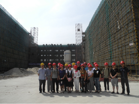 一路上,大家欢声笑语。随着车子缓慢驶入新校区的建设工地时,一幢幢房子映入眼帘。下车后,在进入新校区建设工地之前,为了人身安全,项目组陈思敏老师给我们每人发了一顶安全帽。我们在新校区建设项目组主任章迪康、项目组孙建仁老师的热情介绍下,参观了分院教学楼、设计分院教学楼、图书资讯大楼、行政楼、体育馆、食堂、学生宿舍等。参观过程中,章迪康主任介绍了整个工程规模、进度等情况。最后,大家想实地了解下分院教学楼的建设工程实施进度,进入建设工地查看每一层的建设情况。
