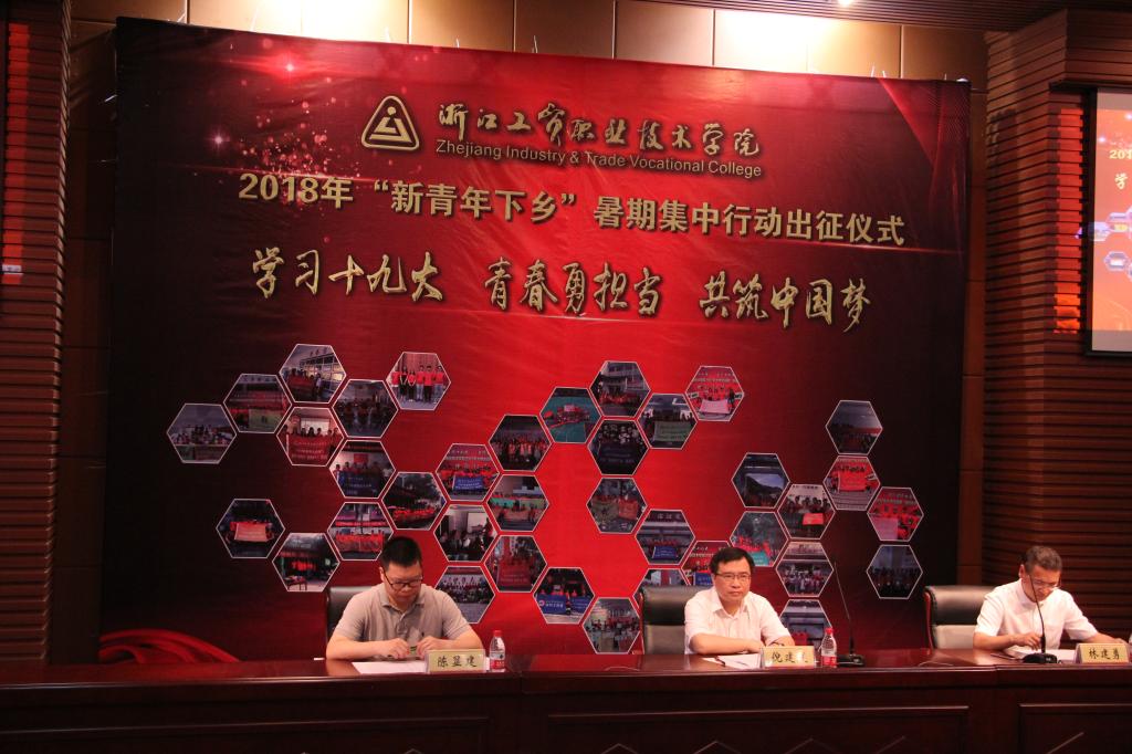 7月4日上午,以“学习十九大,青春勇担当,共筑中国梦”为主题的大学生暑期“新青年下乡”出征仪式在学院学术报告厅举行。学院副院长、党委委员倪建发,鹿城区委宣传部部务成员、区社科联主席林建勇,鹿城团区委书记陈显建,各分院(系)书记,全体指导老师以及实践队员出席出征仪式。