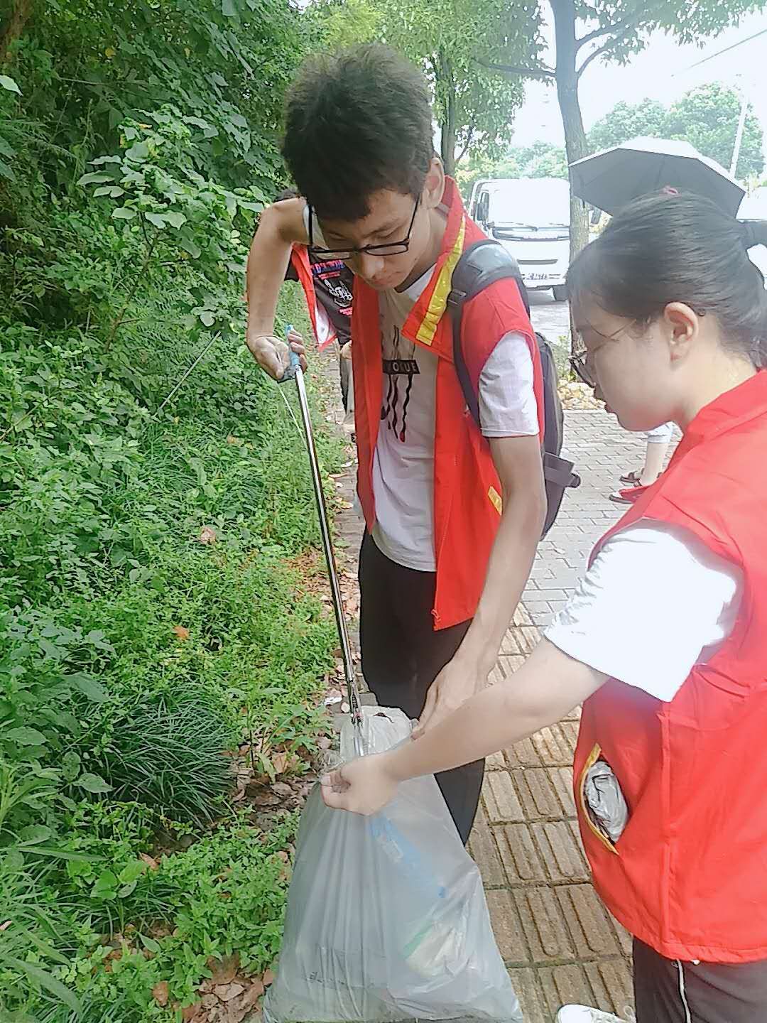 早晨8时,同学们手拿环卫清洁工具,与杨府山社区的居民们一同在杨府山公园周边街道做绿色环保公益活动。十九大报告中有很多内容与民生息息相关,从中央到地方都在积极践行以人民为中心的发展思想,谋民生之利,解民生之忧。此次的活动贯彻着以十九大会议精神为引导,联合社区居民开展“关爱自然,优美环境”主题绿色环保公益捡垃圾活动。太阳已不再是那个温柔的朝阳了,它开始闹起了“脾气”。强烈的阳光像烈火般直射在同学们的脸上,汗水滑过他们的脸颊、脖颈,浸湿了衣衫,然而同学们却从不退缩,依然弯着腰捡出隐藏在深处的垃圾,他们用自己的行动创造出了更多的绿色。队员们在用自己的实际行动,努力让温州变得更美好。