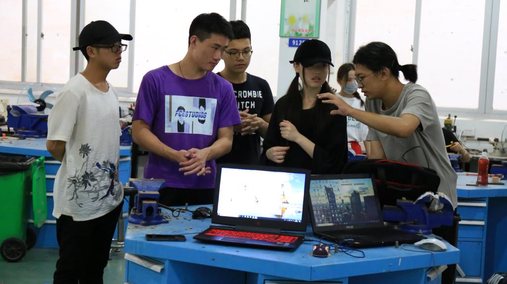 同时各组的指导老师们也积极指导,他们认真负责的态度值得志愿者学习。他们与学生积极探讨,构思着每一个细节,一次次的否定,一次次的修改让每一个作品尽力与完美靠齐。值得一提的是许多老师都是站着指导学生的,可能一讨论就是几十分钟,不辞辛苦,言传身教,将自己的经验以及想法与学生相互交流,用自己的知识为同学们搭建走向成功的桥梁。