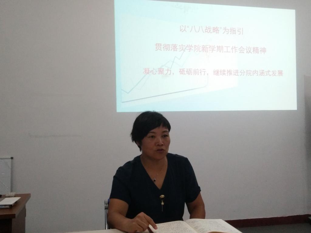 会议还对分院发展规划和教学改革有关事项进行了讨论,统一了思想,凝聚了人心,协调了步骤,为新学期推动分院各项工作更上一个新台阶吹响了冲锋的号角。