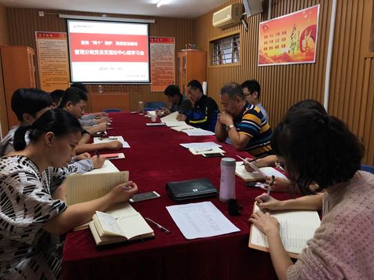 2018年10月10日,管理分院党总支在党员之家举行以“聚焦两个维护,推进政治建设”为主题的党总支理论中心组学习会。管理分院党政联席会成员参加会议,管理分院办公室主任、实训中心主任、各专业主任、各党支部书记、教工党小组长等列席学习会。学习会由管理分院党总支书记项光春主持。