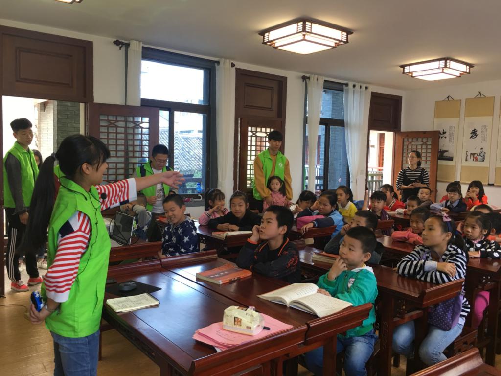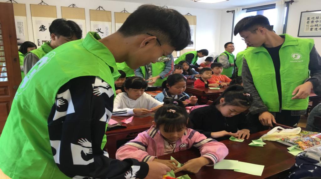 早上9点,志愿者们来到驿头文化大礼堂,受到当地孩子的热烈欢迎。活动初始,由环境工程1801班的葛佳好为学生们带来介绍传统节日--重阳节的知识课堂。课堂上,一段以《九月九日忆山东兄弟》为背景音乐的沙画视频,引出了课堂的主题---重阳节。学生们积极参与课堂中,讨论重阳节的别称、习俗以及重阳节的来历。在了解重阳节的相关知识后,志愿者们带领学生观看并教导朗诵《中华孝道》,教室里回荡着“百善孝为先,孝敬是根本……中华孝道是美德,传给后来人”的声音。课堂的最后一部分,志愿者们指导孩子学折樱花。在志愿者的帮助与小朋友们坚持不懈的努力下,各个学生们都做出了一朵朵美丽的樱花。活动最后,志愿者希望学生们能牢记传统节日,回家孝敬长辈,同时为爷爷奶奶送上自己亲手折的樱花。