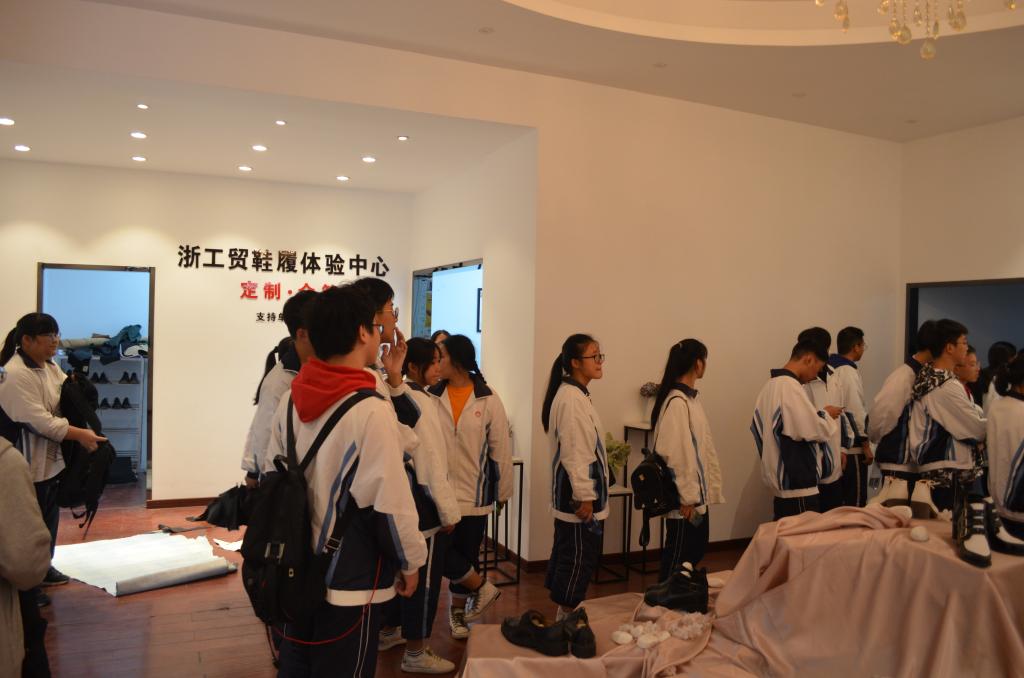 在设计分院老师的带领下,首先参观了学校的知识产权服务园、风险投资研究院、食堂、国家广告产业园、浙江创意园、浙江省工业设计基地、鞋类设计与工艺专业实训基地,让学生对工贸学院的办学特色和取得的成绩有所了解。