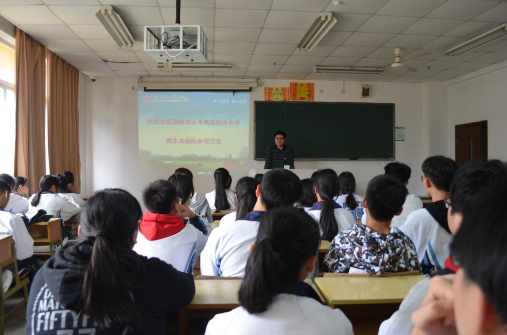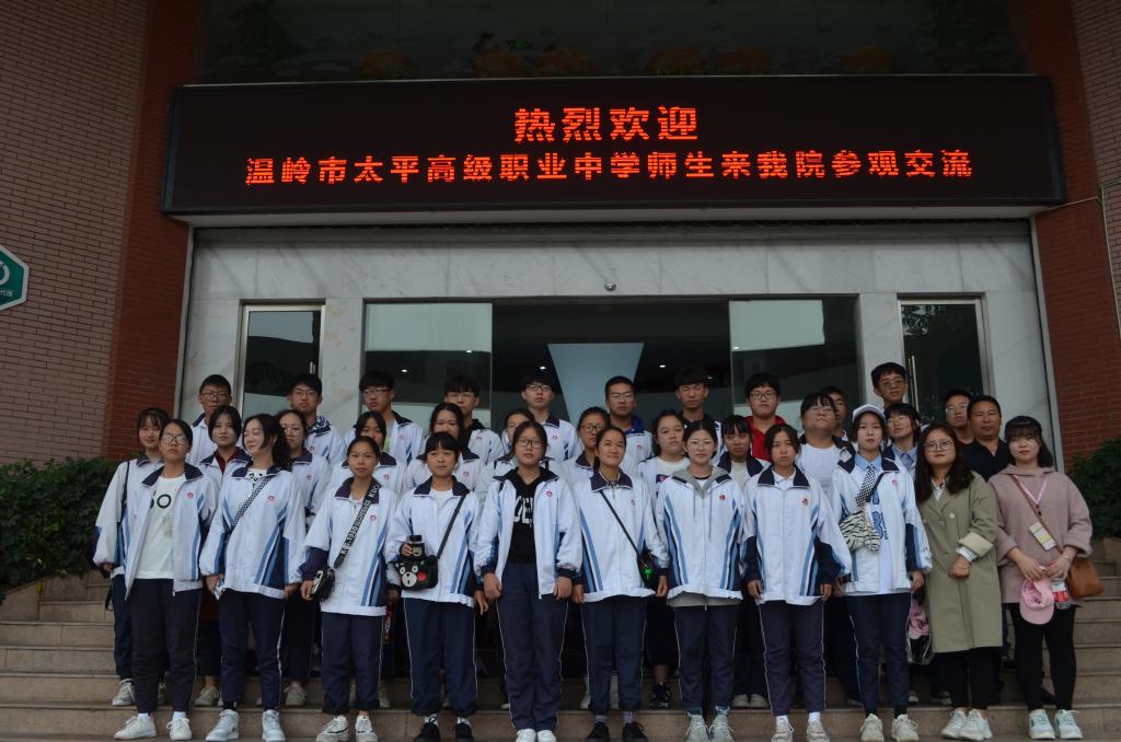 为深化与温岭市太平高级职业中学合作,推进“3+2”中高职一体化人才培养,了解工贸学院创新创业特色级人才培养模式。10月16日上午,由温岭市太平高级职业中学林海兵部长等三位老师带队的31名学生来我院参观交流。