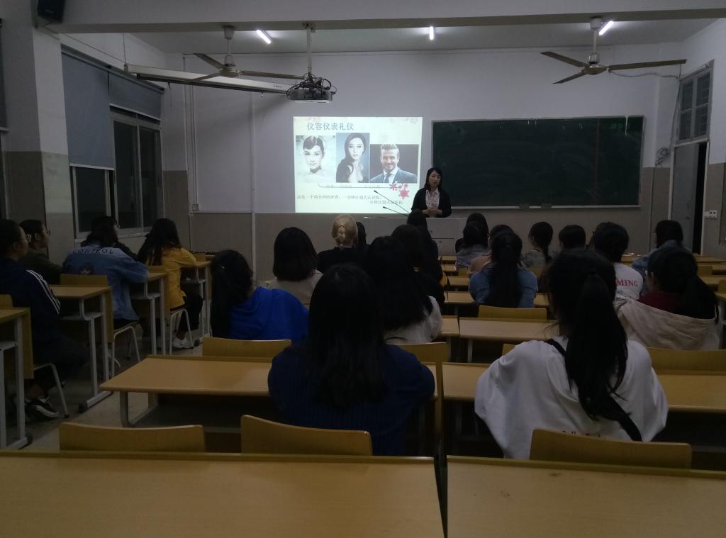 2018年10月19日晚上,创业学院举办巾帼训练营第一期活动,主题是女性化妆造型,活动在1308教室举行。此次讲座邀请到上海玲丹文化传播有限公司总经理陈海燕作为主讲导师,到场学生30多人,均为工贸大一新生。