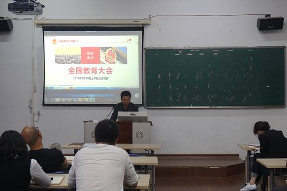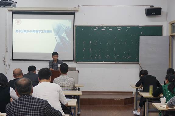 管理分院院长潘毅老师结合2018年分院教育教学改革重点任务,就贯彻落实全国教育大会精神进行了讲话。