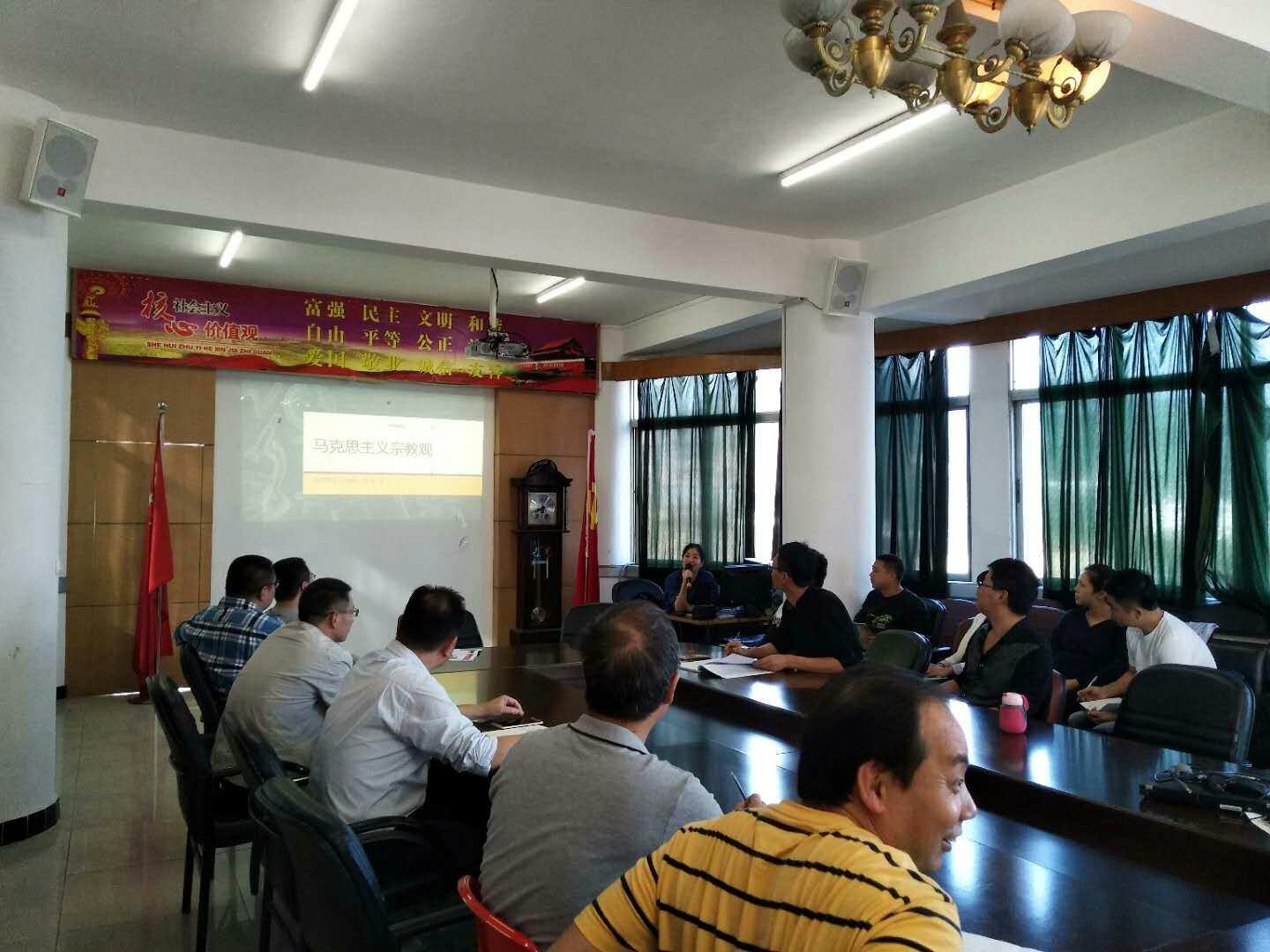 会议的第一项议程由人文系朱余洁授课,主题为马克思主义宗教观。朱老师用丰富的教学案例,让教师党员更加清晰地了解宗教政策,服务实际工作。