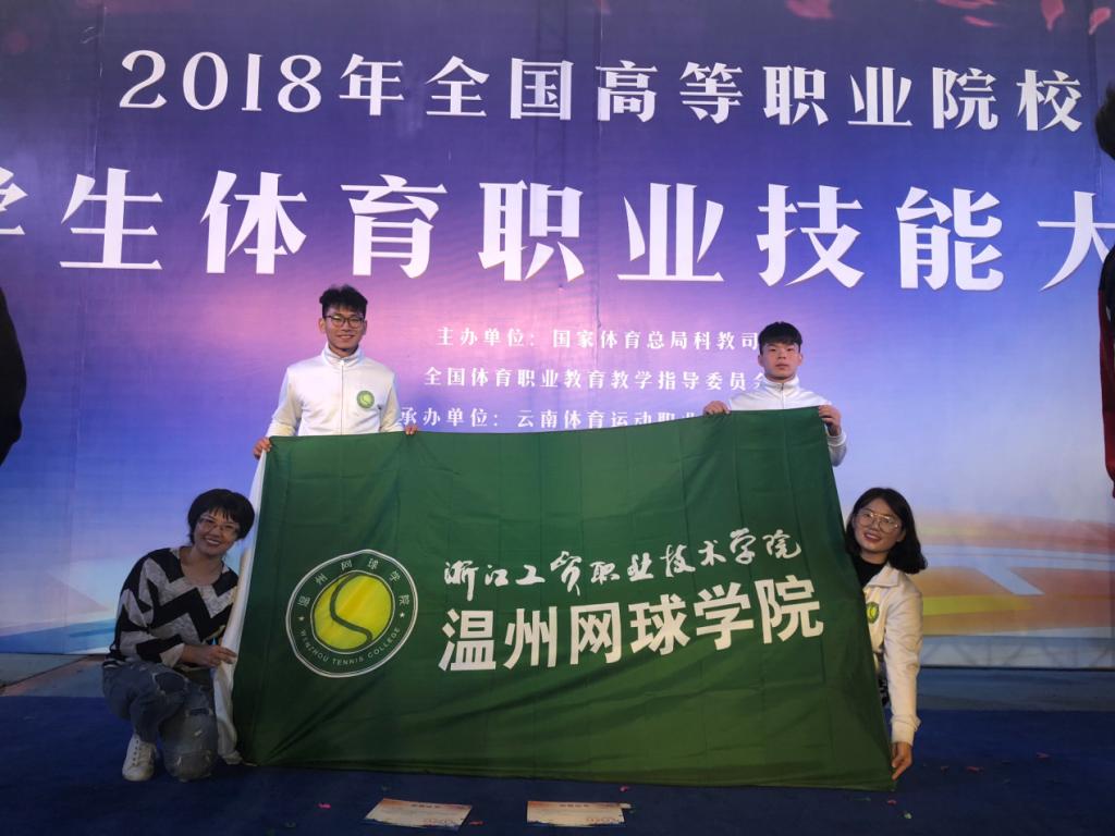11月5日—11月9日,由国家体育总局科教司、全国体育职业教育教学指导委员会主办的2018年全国高等职业院校学生体育职业技能大赛在云南体育运动技术学院拉开帷幕。来自全国近80支参赛队伍共593名选手参加了此次大赛。本次大赛旨在深入贯彻全国教育大会和《国务院关于加快发展现代职业教育的决定》精神,进一步提升学生的职业素质和技能水平。温州网球学院自接到参赛通知到正式参赛只有一个半月时间,分院上下十分重视。通过分院内部初赛选拔,最终选出了黄江浩、吴连锘、吴瑞敏三位同学组成学生团队,在网球学院朱秀清老师、创业学院申珊珊老师、企业代表潘祥生先生的指导下,报名参加了体育营销技能项目的比赛。