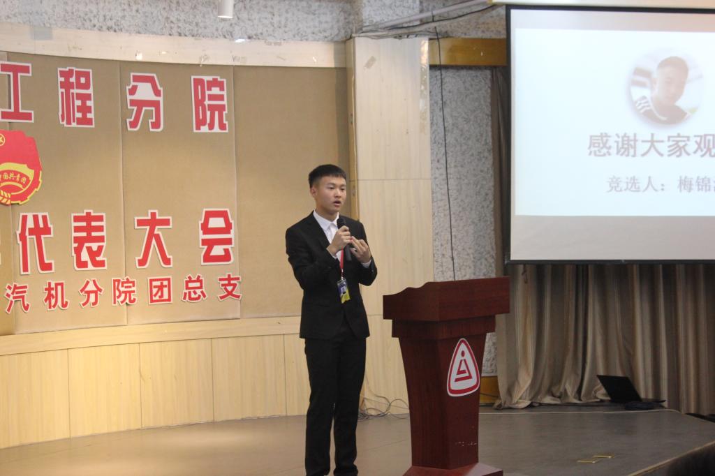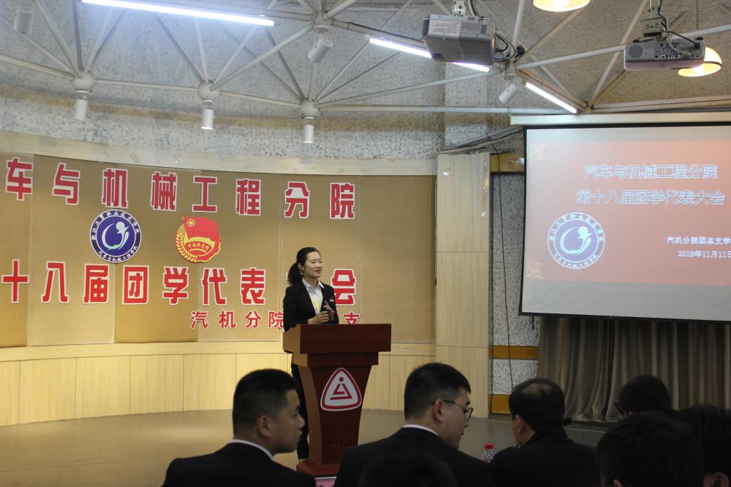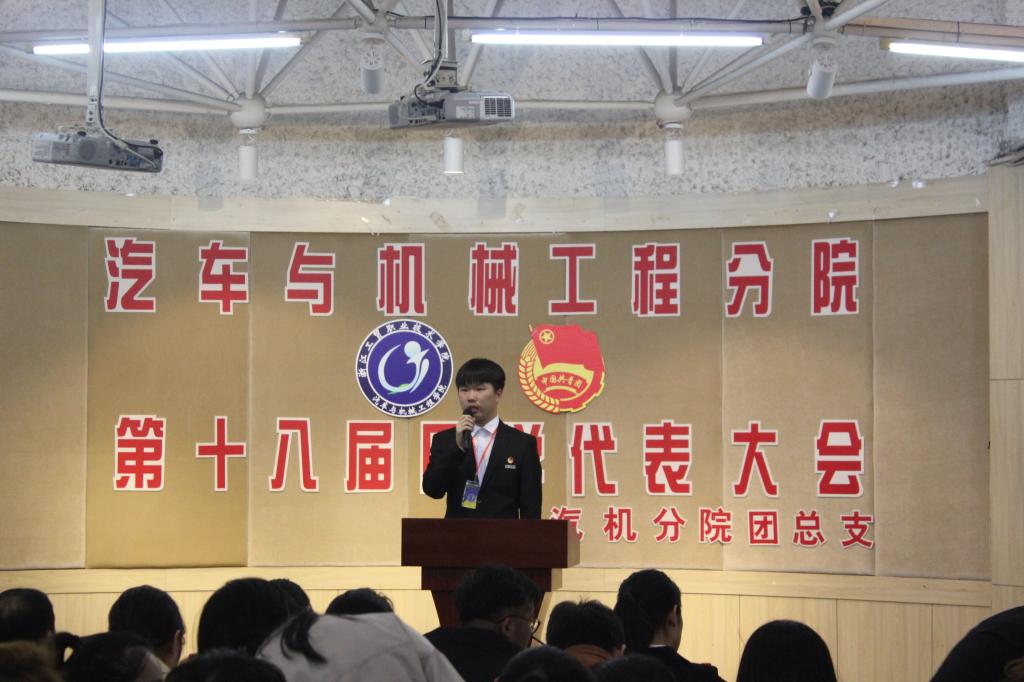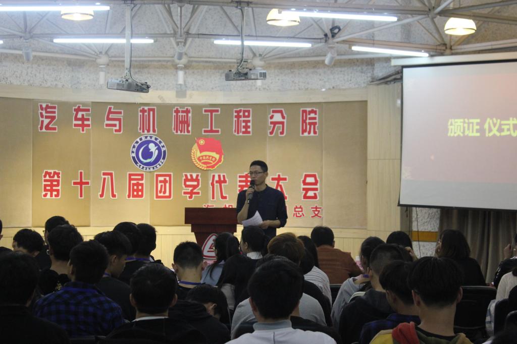 2018年11月11日晚上,汽机分院第十八届团学代表大会在一号教学楼多功能厅举行。我院党总支书记吴学亮老师、辅导员周全老师、黄丹华老师、2017级学生会主席团、部长以及17、18级班长和团支书出席了本次大会,大会由团总支副书记——汽销1602班陈梦甜主持。