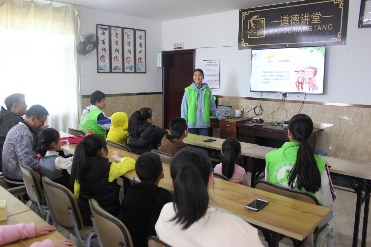 继上周开展的关爱儿童篇之“传扬中国梦·造健康体魄”的红色星期日新青年下乡活动。2018年11月24日早上,汽机分院继续开展关爱儿童为主题的新青年下乡活动,在辅导员黄丹华老师带领下,分院绿色啄木鸟志愿队来到了藤桥镇南岸村文化礼堂,开展了面向儿童的“防拐骗”知识讲座和手工艺课程。